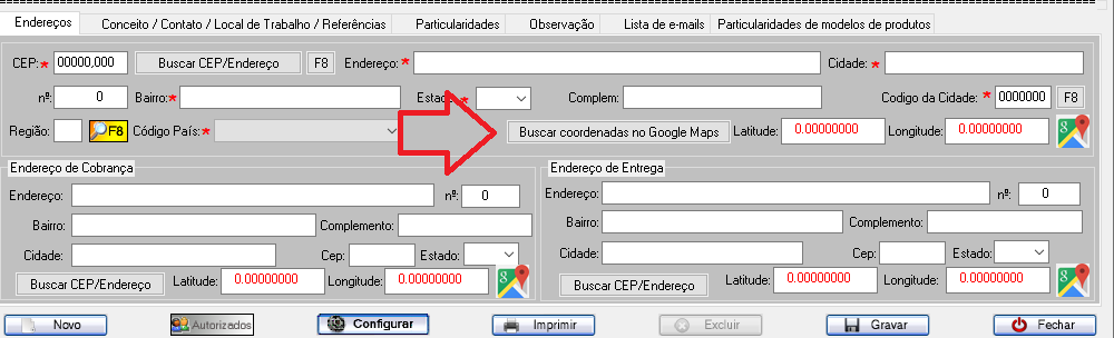 O mesmo procedimento pode ser realizado para os endereços de cobrança e entrega.