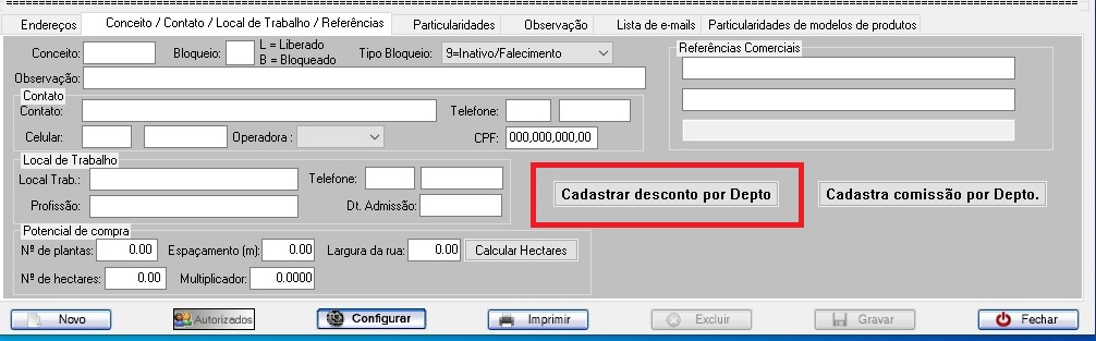 É possível cadastrar descontos para este cliente de acordo com o departamento de compra.