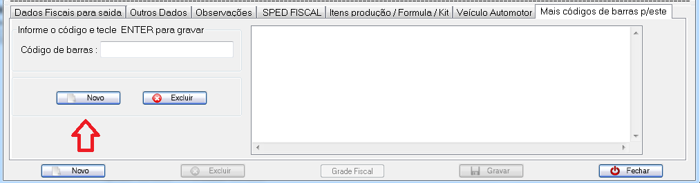 Clique em Novo, digite o código de barras e clique em gravar.