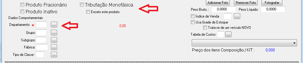 Se o produto não for unitário devemos marcar a opção Produto Fracionário.
