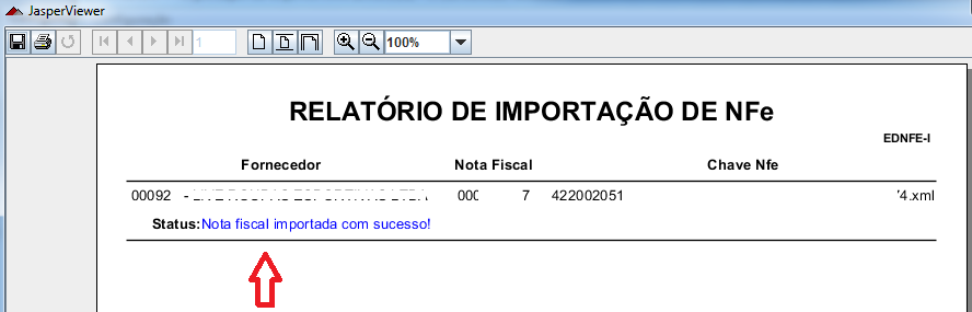 Será aberta uma janela com o relatório de importação da nota fiscal.