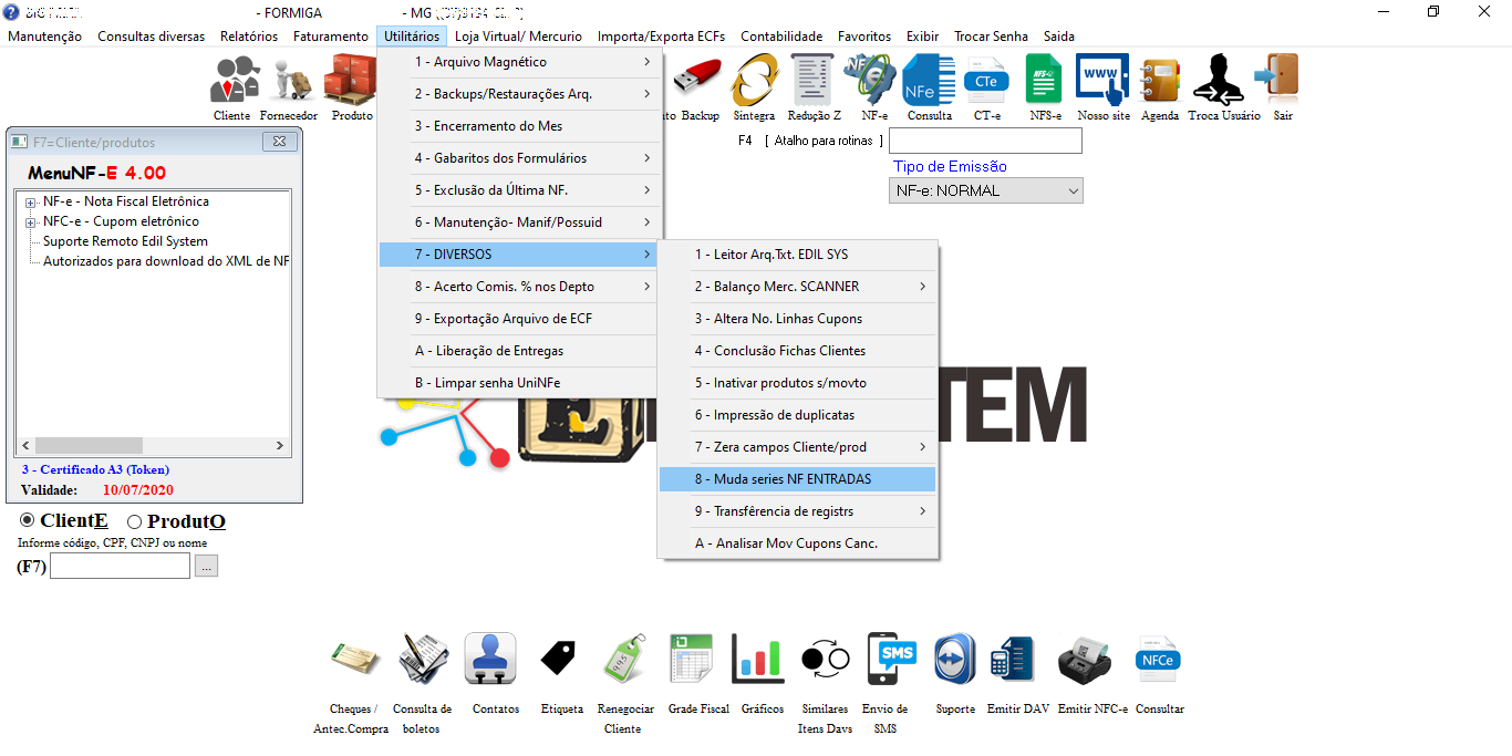 Depois de feito o estorno, acesse a tela Utilitários 7-8.