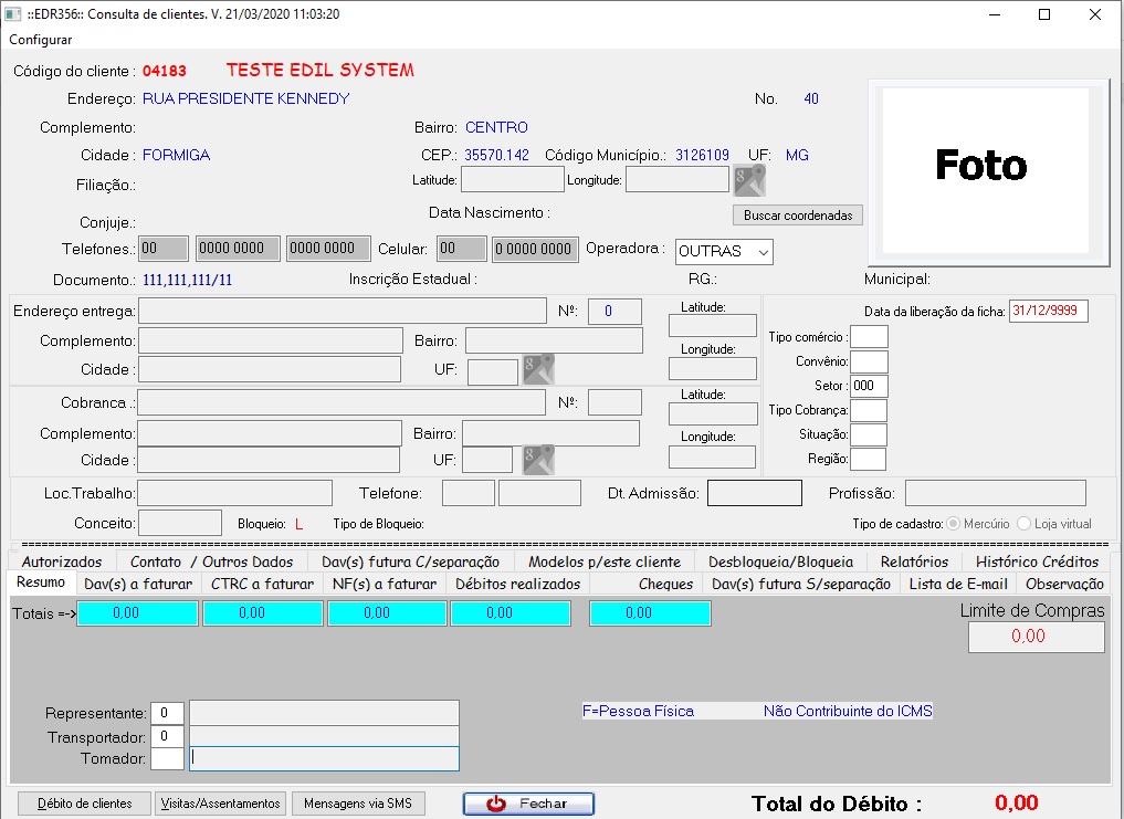 Com o cliente/fornecedor selecionado, poderá aparecer uma janela na tela para confirmar todos os dados (CNPJ/CPF, IE, Endereço, etc.). Após a confirmação dos dados do cliente/fornecedor, feche a tela e prossiga teclando enter ou clicando em Ok Cliente.