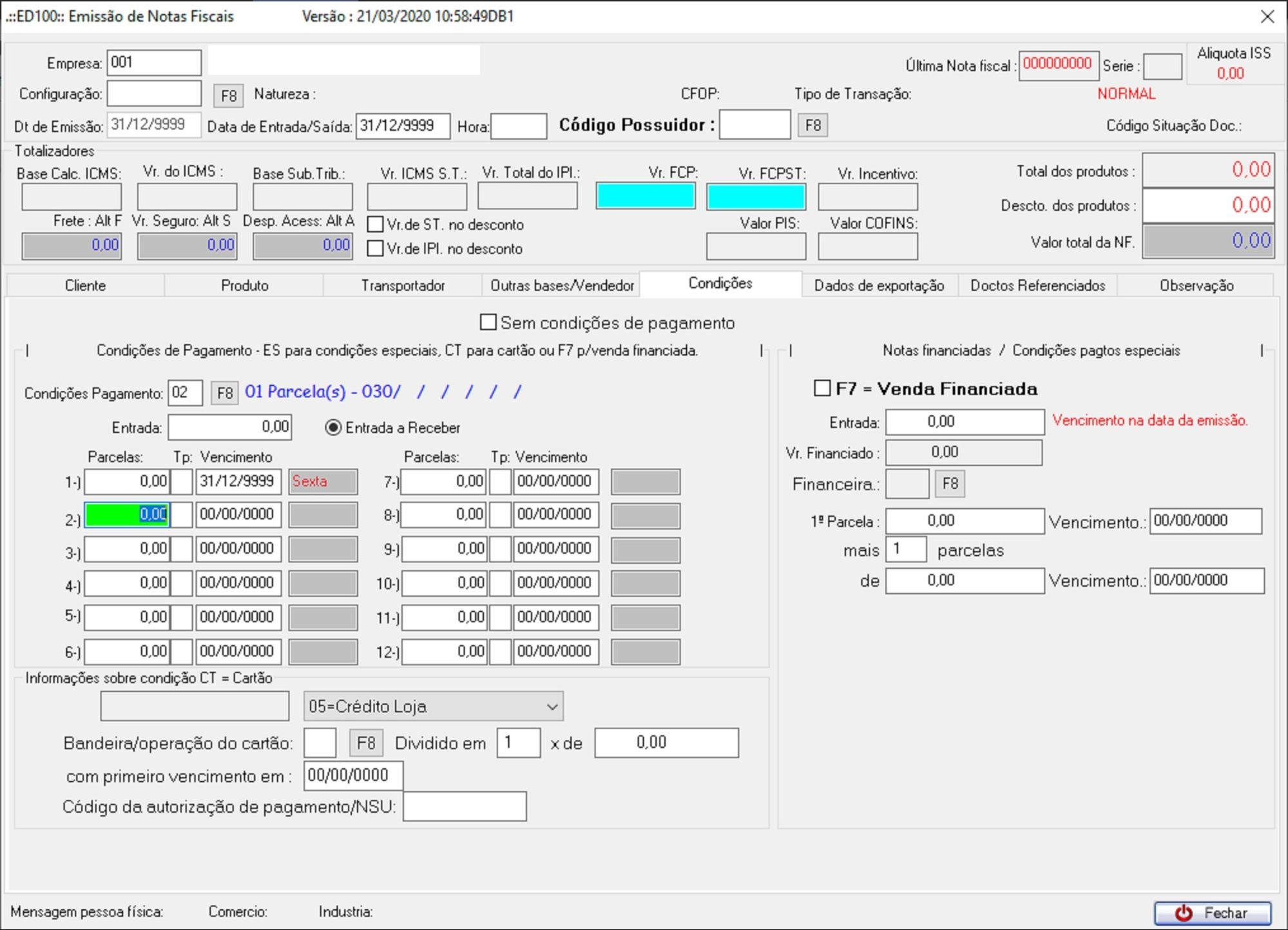 Notas de devolução não possuem condição de pagamento. Nesse caso, marque “Sem condição de pagamento”