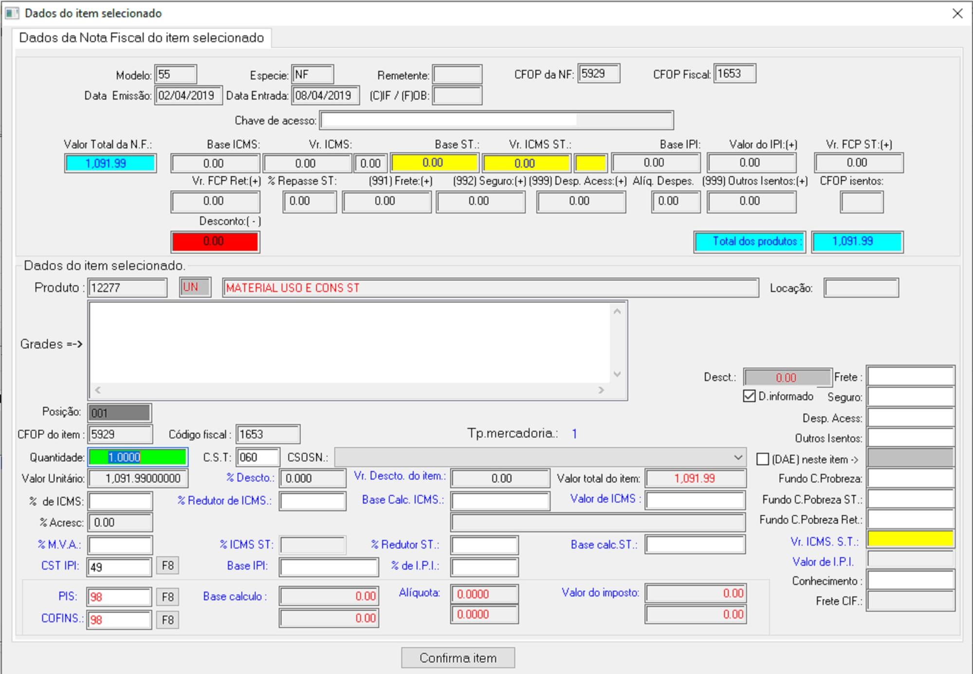 Após adicionar os itens, feche a janela e finalizar a nota normalmente.