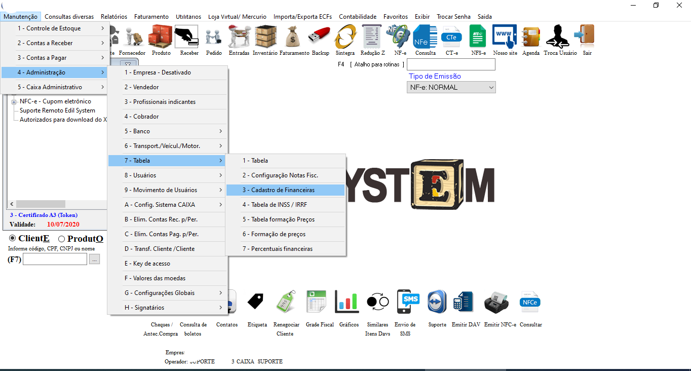 É necessário ter uma financeira cadastrada! Caso não tenha, vá para o final da página.