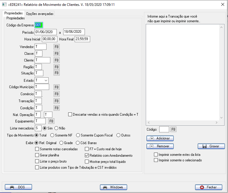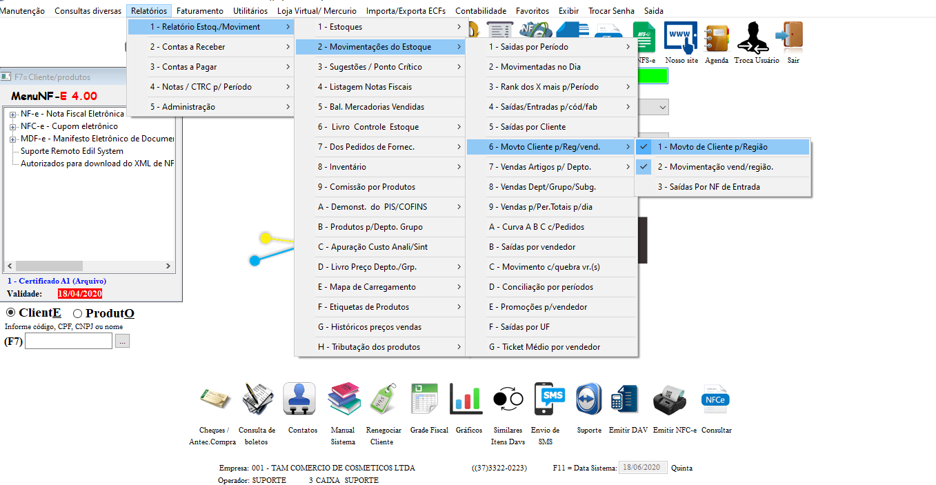 O relatório de movimento de clientes exibe tudo o que foi vendido no período em determinada condição de pagamento. Para emiti-lo acesse Relatórios 1-2-6-1
