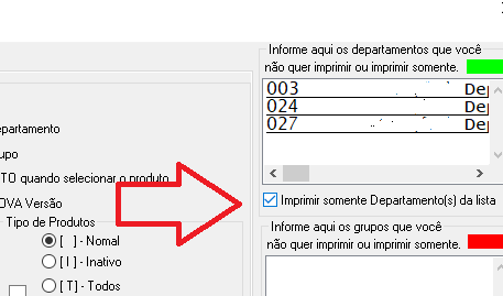 Para imprimir somente os relatórios dessa lista, seleciona a opção abaixo “Imprimir somente os departamentos da lista”. Para imprimir todos, exceto os listados, não marque essa opção.