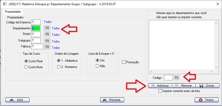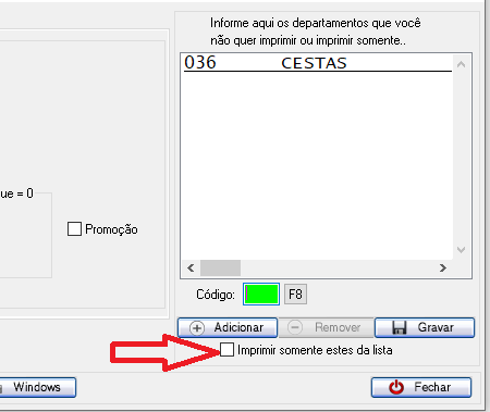 Para imprimir os produtos dos departamentos selecionados, marque a opção “Imprimir somente estes da lista”. Para imprimir os demais departamentos exceto os listados, não marque essa opção.