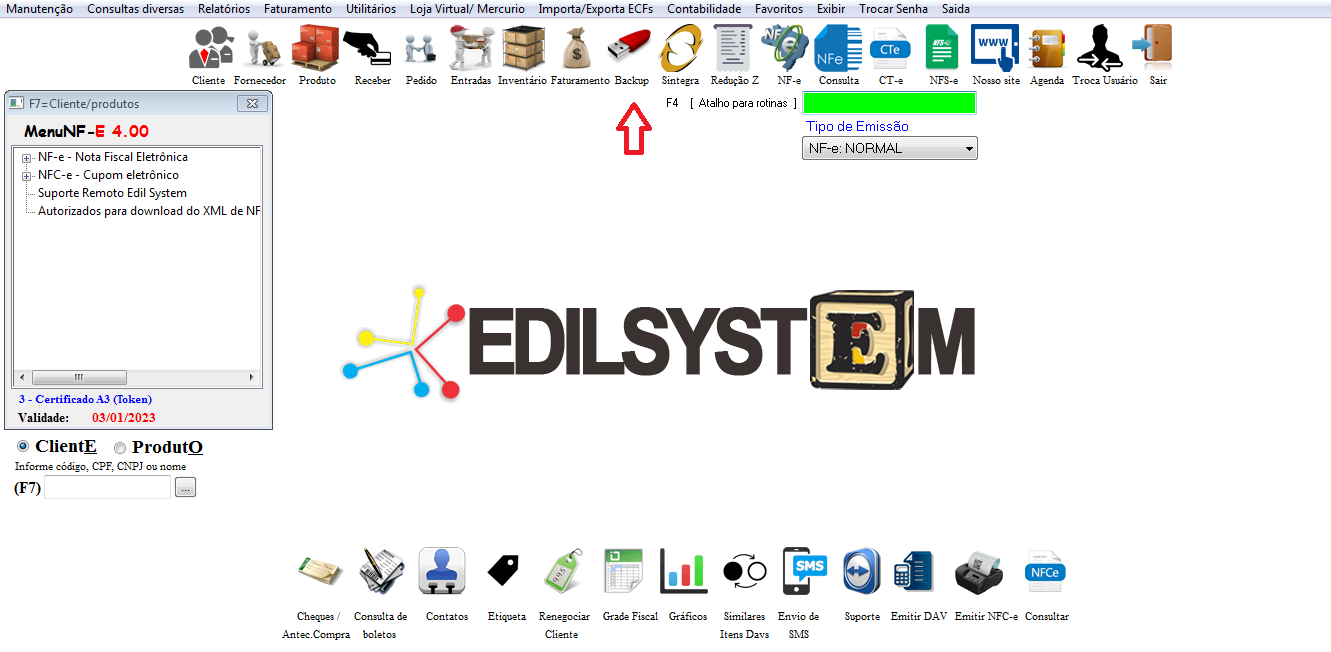 O Backup é um cópia de segurança dos arquivos do programa. Por se tratar de um programa fiscal, é muito importante manter backups do sistema para evitar a perda de dados.